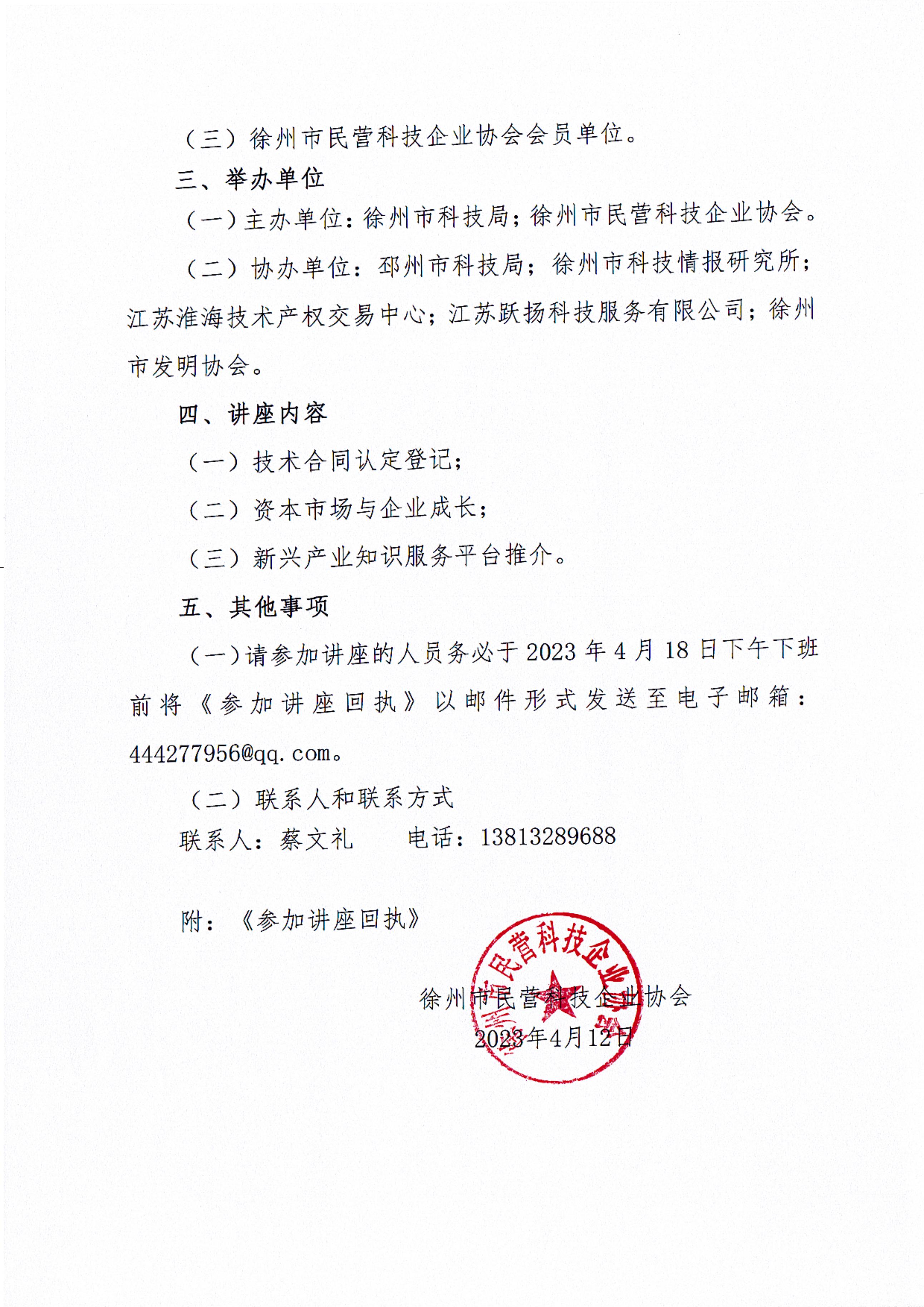 關(guān)于舉辦徐州市科技創(chuàng )新系列講座(三)通知